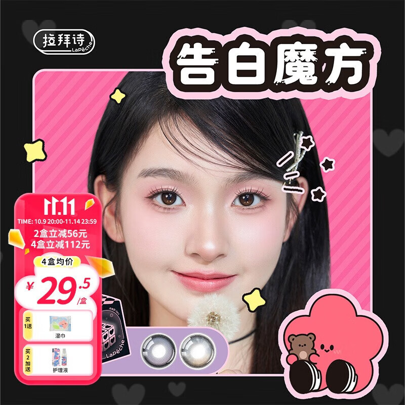 拉拜诗美瞳告白魔方月抛2片大小直径彩色隐形近视眼镜小方盒 全糖预警 0度