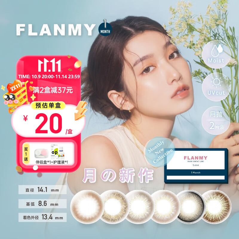moody美瞳月抛隐形眼镜精选系列2片装近视眼镜三明治浮云梦游0度