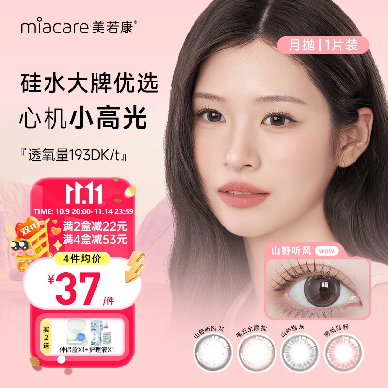 美若康硅水凝胶美瞳月抛1片彩色隐形小直径近视眼镜辻花迷漫系列三明治 【山屿猫 灰】甜酷小黑环 0度