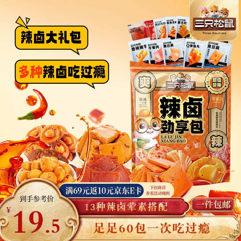 三只松鼠辣卤礼包乐享款60包 辣条魔芋爽豆干卤味解馋休闲