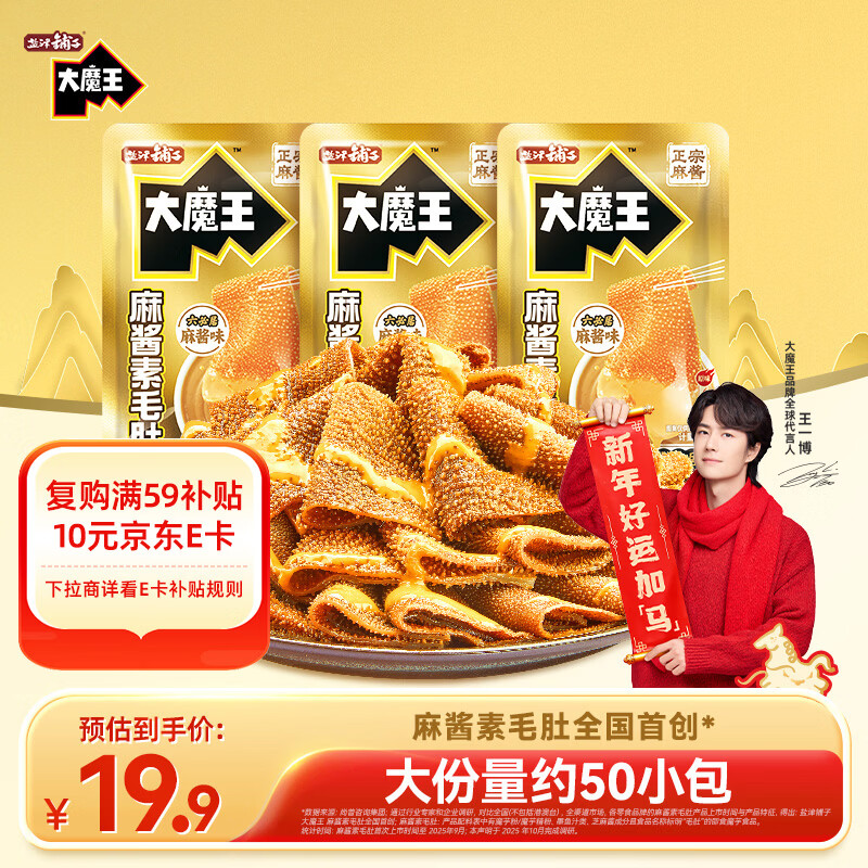 盐津铺子大魔王经典麻酱味约450g 素毛肚魔芋爽火锅小吃休闲