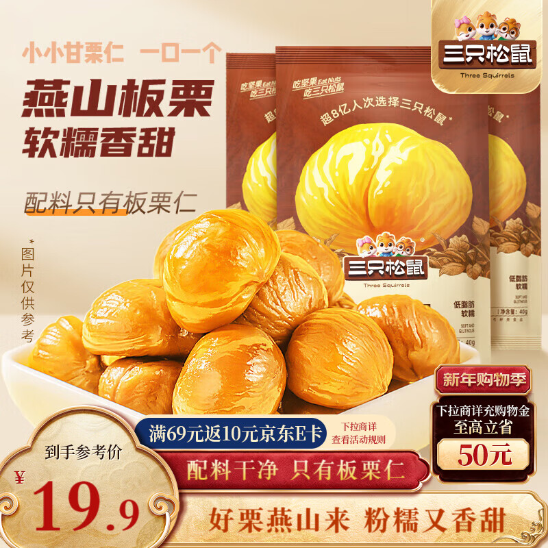 三只松鼠甘栗仁40g*11袋 无壳即食软糯香甜优质板栗仁栗子仁休闲