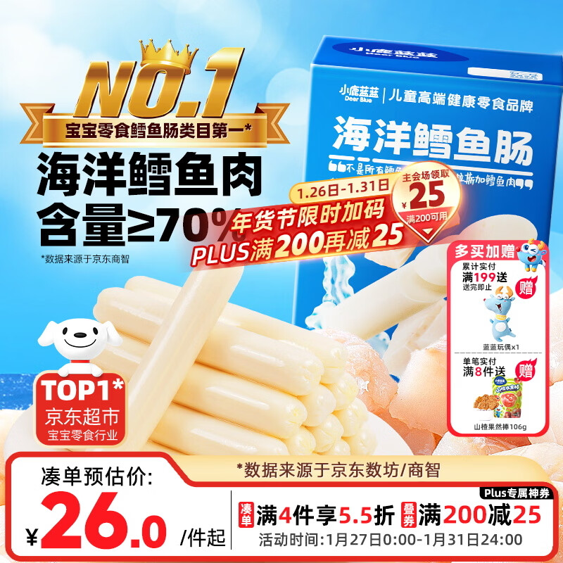 小鹿蓝蓝海洋无污染鳕鱼肠 宝宝儿童