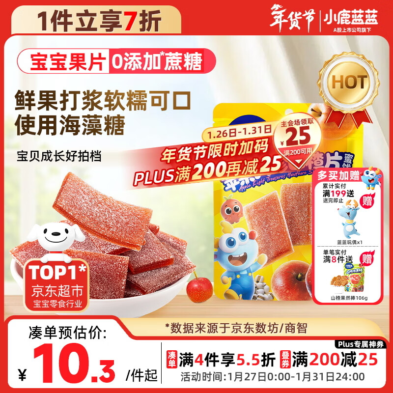 小鹿蓝蓝【0添加蔗糖】苹果八珍山楂片果片山楂条宝宝儿童