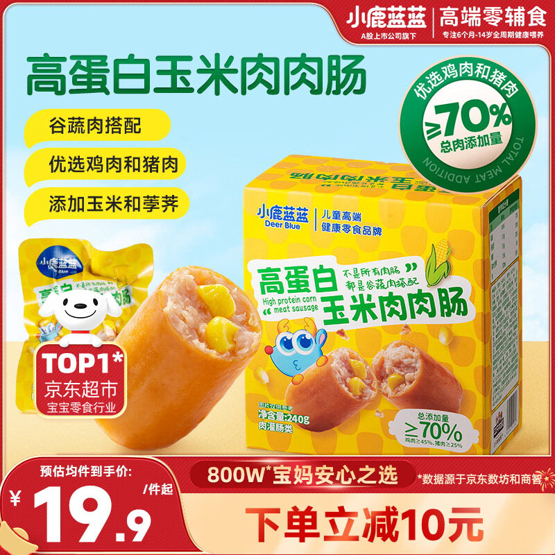 小鹿蓝蓝高蛋白玉米肉肉肠香肠露营出游小吃脆皮肠宝宝儿童