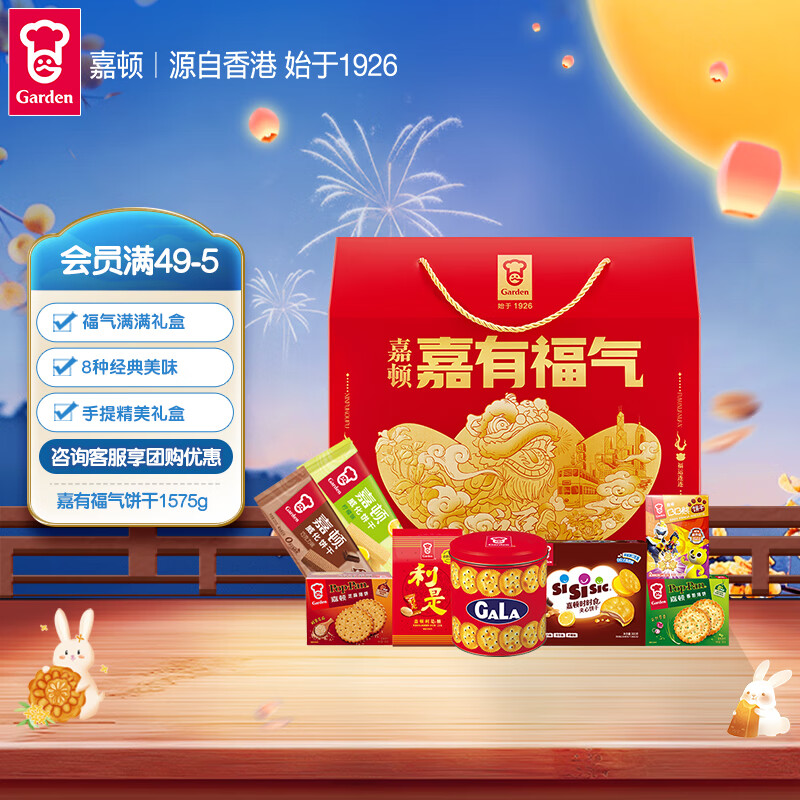 嘉顿(Garden)嘉有福气饼干礼盒1575g休闲