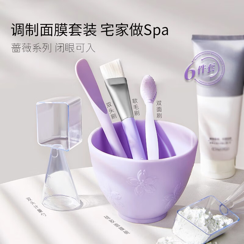 京悠雨硅胶调面膜碗和刷子加勺子套装美容院专用小号网红三件套 6件 紫色套- 送收纳袋