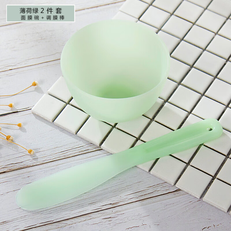 装家用DIY硅胶2件套面膜工具美容院大号调膜碗面膜刷 2件 薄荷绿套(碗+棒b