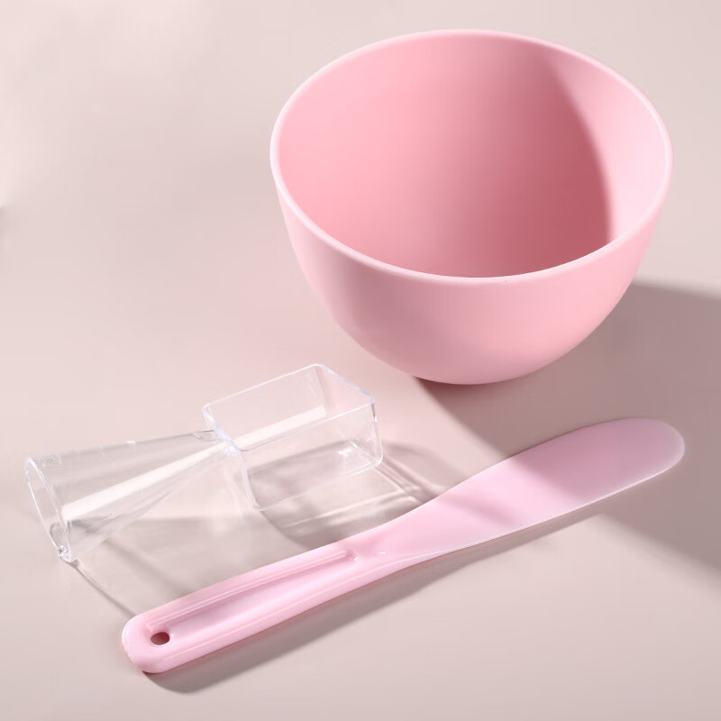 调膜美容工具面膜碗套装三件套美妆用品脸部护理美容工具面膜刷子 粉色3件(平底勺+小碗+小棒)