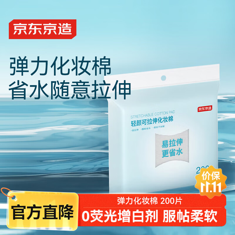 京东京造轻颜可拉伸弹力化妆棉200片 湿敷洁面洗脸卸妆棉擦脸巾