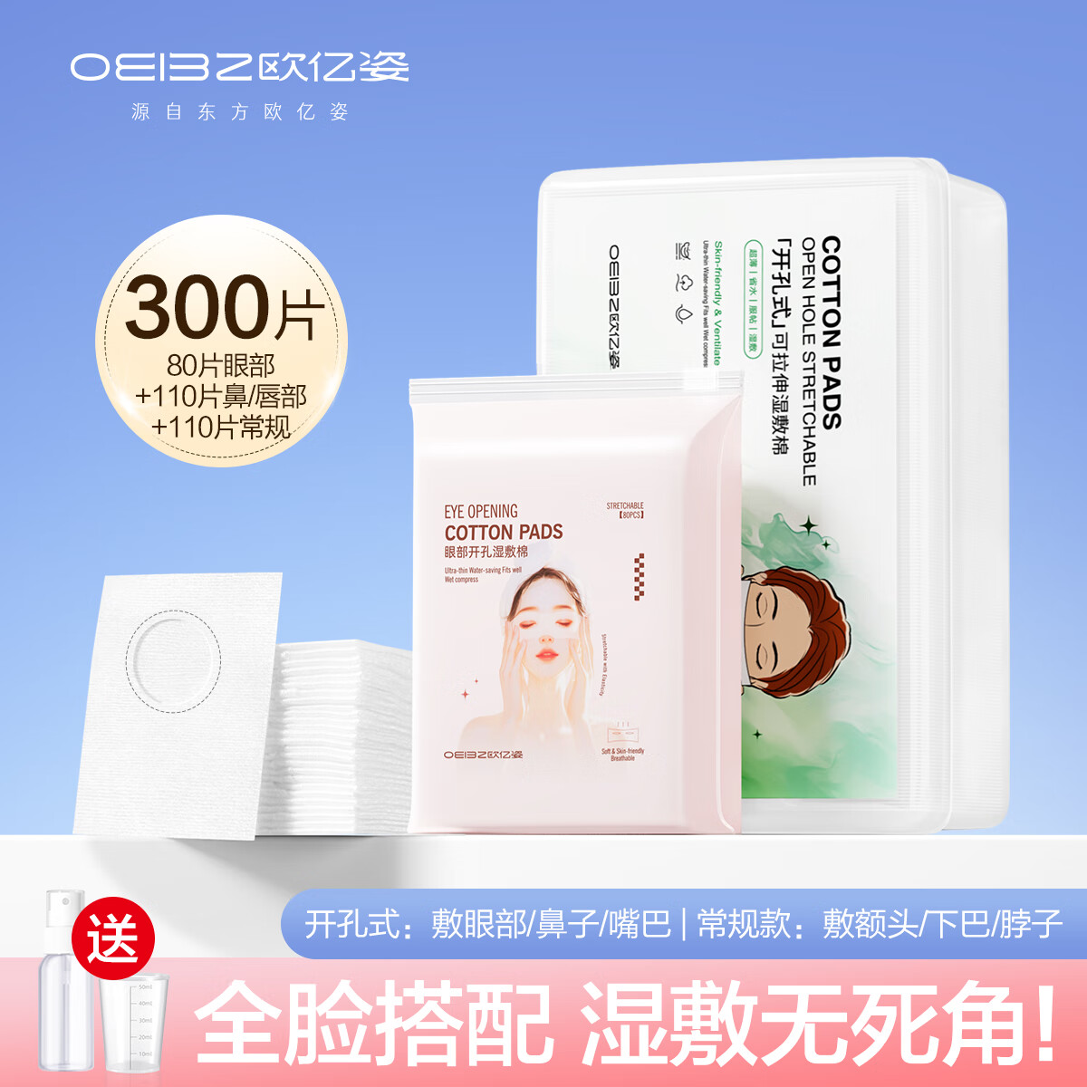欧亿姿(oeiez)眼部开孔湿敷棉超薄可拉伸省水化妆棉水疗专用高弹超细补水面膜纸 薄款 300片 全脸搭配