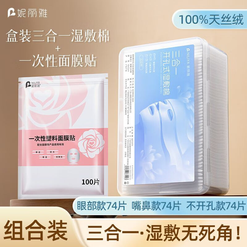 妮丽雅开孔湿敷棉可拉伸敷脸专用超薄全棉面膜纸化妆棉脸部卸妆棉 薄款 222片 湿敷棉+保鲜面膜贴