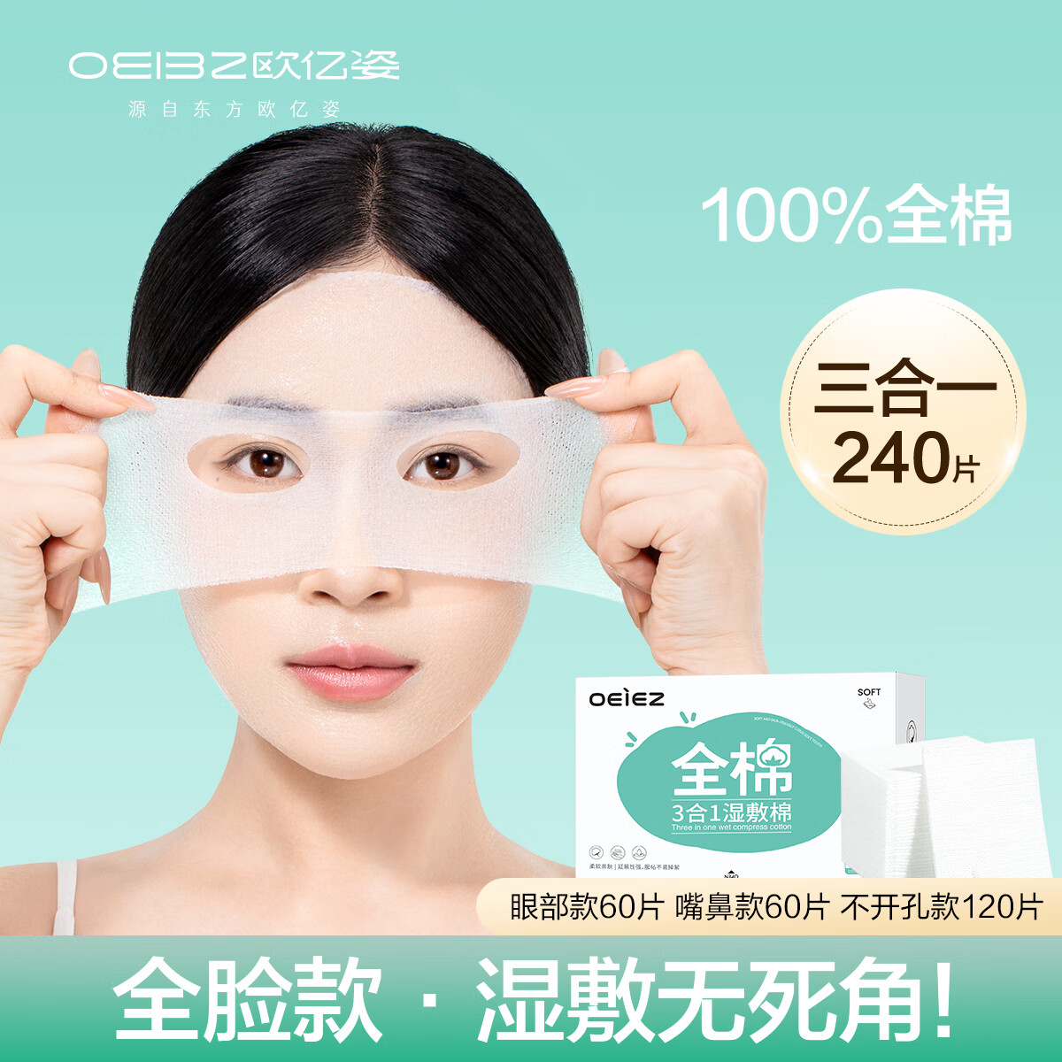 欧亿姿全棉可拉伸湿敷棉三合一开孔免剪敷脸专用美容面膜纸开口化妆棉 薄款 240片 【全棉三合一】