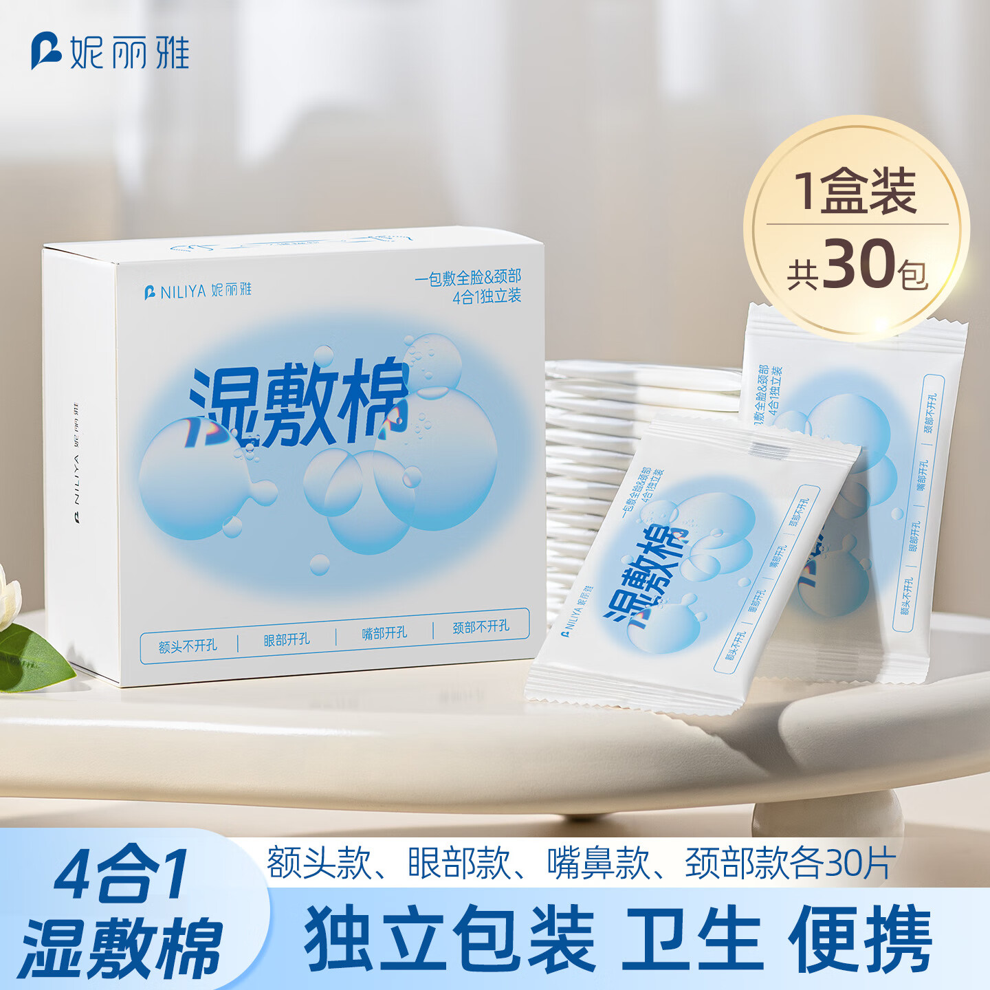 妮丽雅独立便携可拉伸湿敷棉敷脸专用补水省水面膜纸开口式四合一 薄款 120片 【便携四台一独立装-全脸搭】1盒/30包