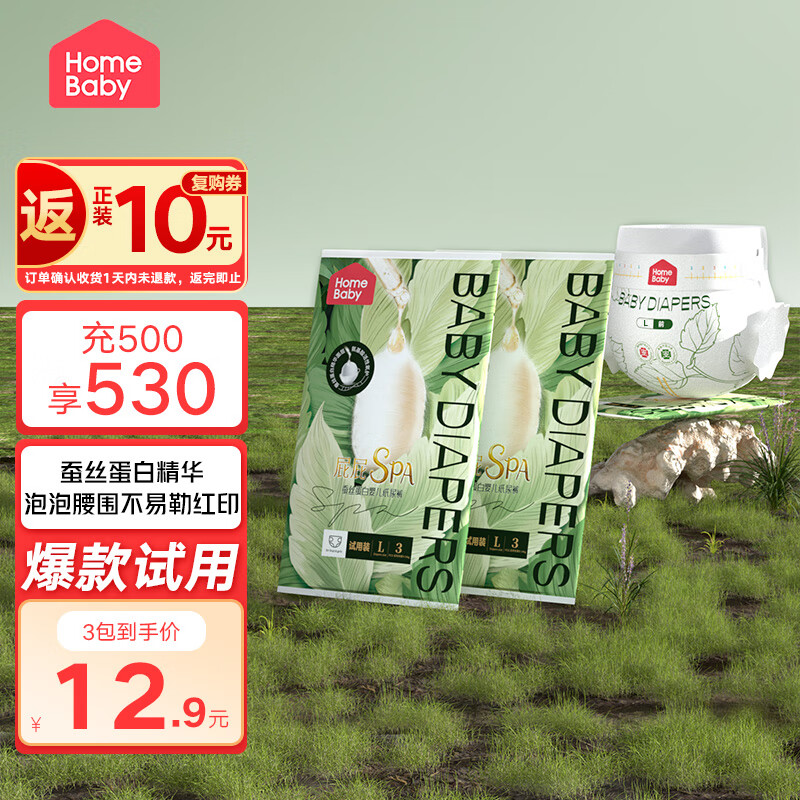 家得宝(homebaby)蚕丝蛋白面膜裤婴儿拉拉裤超薄柔软透气男女通用宝宝纸尿裤 纸尿裤试用装L码9片7-11kg