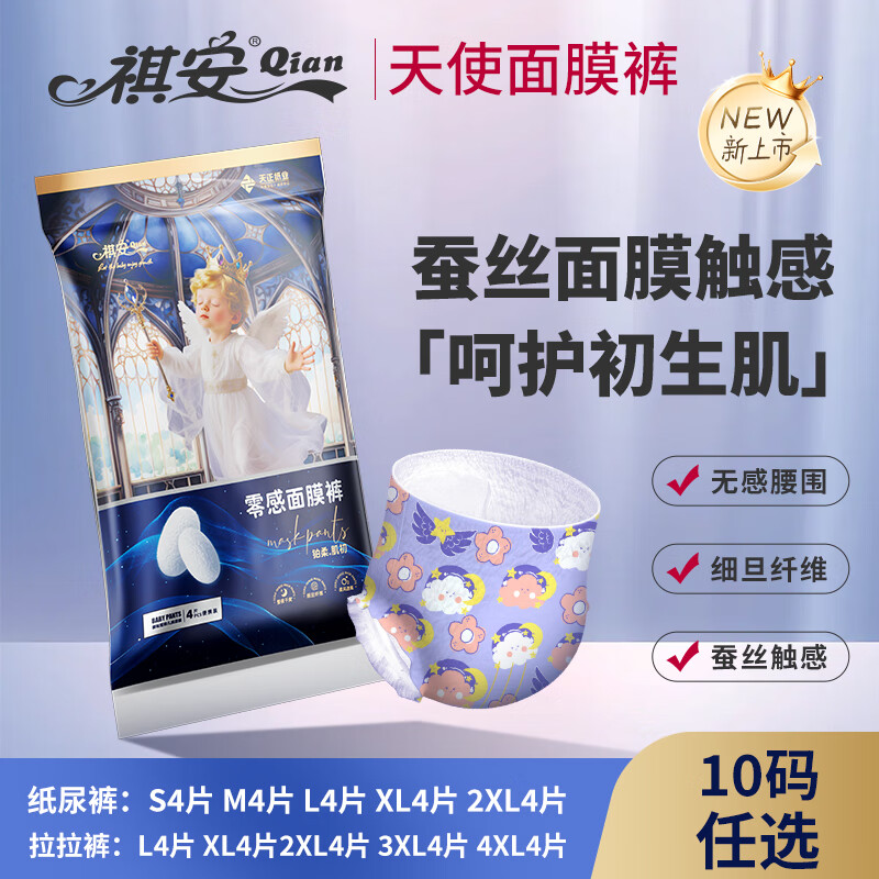 祺安天使面膜裤便携装宝宝拉拉裤婴儿纸尿裤超薄护臀零感透气小花裤 纸尿裤2XL码(腰贴型) 4片便捷装