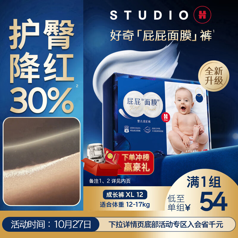 好奇(Huggies)屁屁面膜拉拉裤mini装XL12(12-17kg)尿布湿【护臀降红30%】