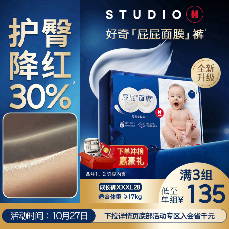 好奇(Huggies)蓝标屁屁面膜拉拉裤XXXL28(17kg以上)尿不湿【护臀降红30%】