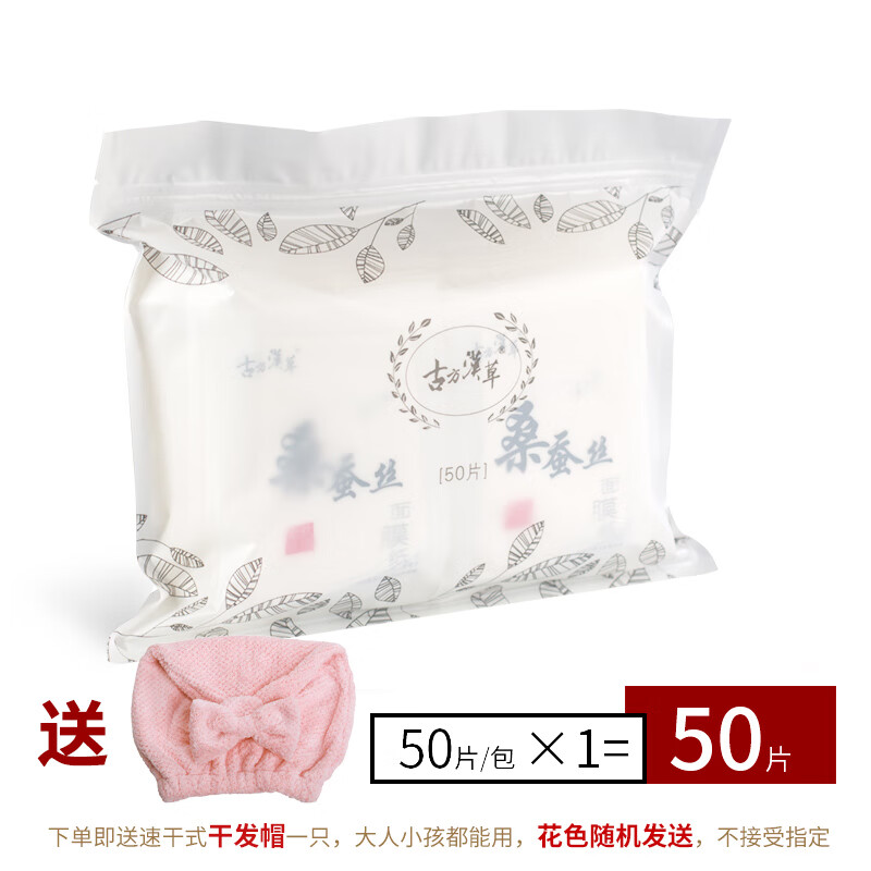 【甄选】真蚕丝面膜纸超薄一次性100片干面膜桑蚕丝蛋白纸膜补水d 50片试用装+干发帽