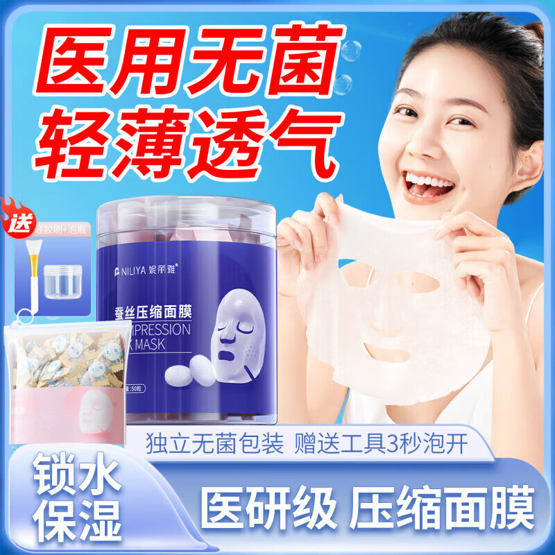 佰束面膜纸敷脸专用医用无菌独立包装一次性超薄纯棉桑蚕丝 1袋蚕丝压缩面膜50粒[袋装]