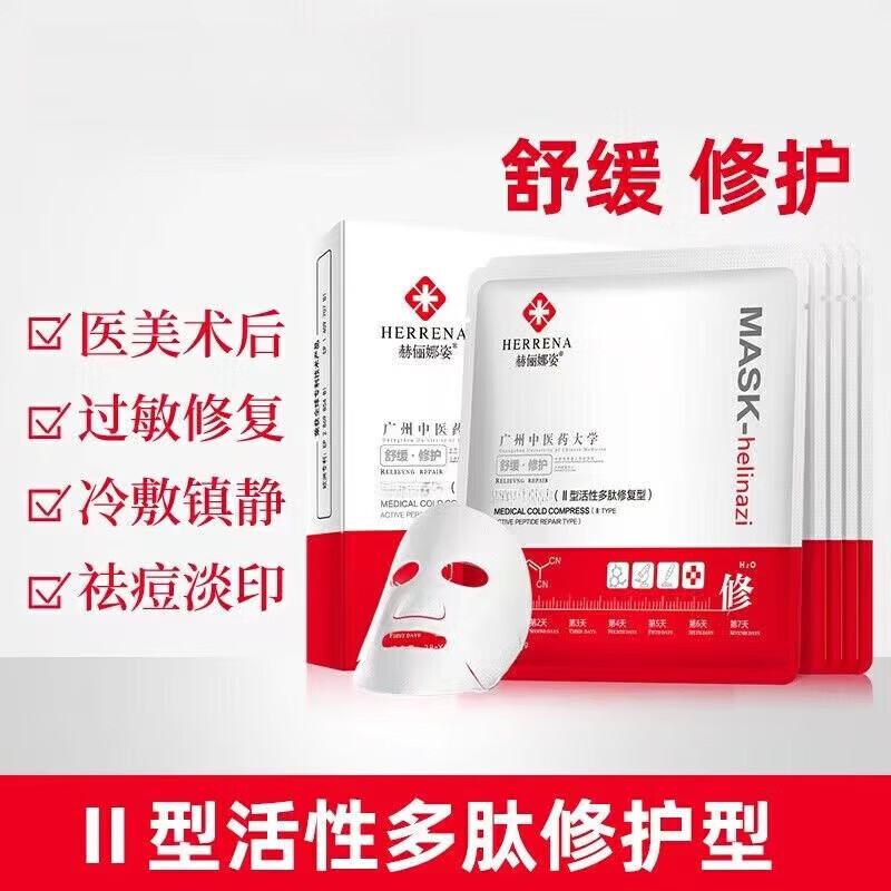 赫俪娜姿 械字号医用冷敷贴面膜型水光针微针医美术后产后晒伤修复敏感肌补水保湿祛痘消炎改善泛红修护敷料 修复冷敷贴 1盒/5片