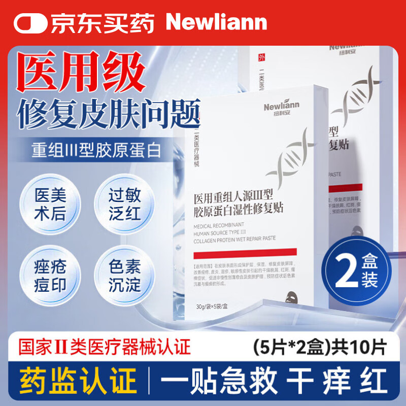 Newliann2盒医用冷敷贴面膜型械字号晒后补水祛痘祛痘印消炎医美术后修复