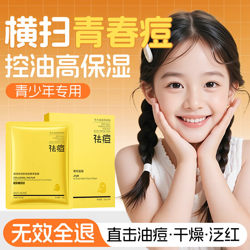 胶态硫祛痘面膜痘痘修复消炎淡化痘印学生青春痘控油补水保湿正品 一盒 25gx5片(盒装)
