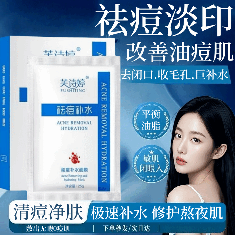 芙诗婷消炎面膜祛痘面膜淡化保湿控油收缩改善毛孔紧致青春痘修复补水 【改善痘肌】祛痘补水面膜1盒