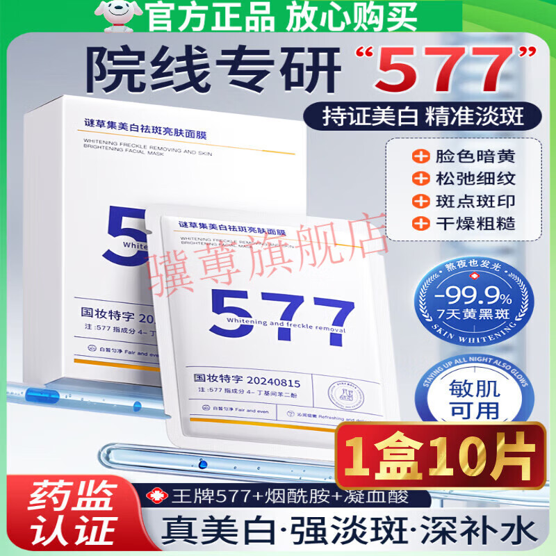 鹿角卉朵可光耀丽美白面膜577补水美白去黄气暗沉提亮肤色抗皱精华淡斑 【一片白一度】1盒10片装