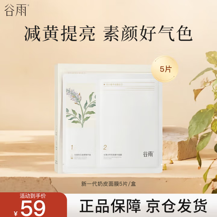 谷雨谷雨新一代奶皮面膜5片/盒 补水美白去黄气暗沉淡斑美白面膜熬夜