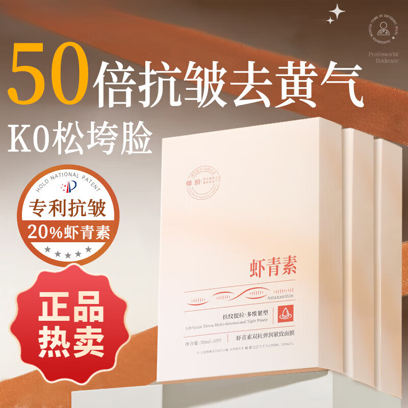 倾龄虾青素精华面膜补水美白面膜双抗氧去黄气暗沉抗皱紧致 20片 抗氧抗糖两盒装