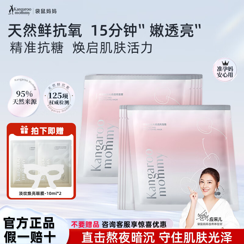 袋鼠妈妈(Kangaroo Mommy)准孕妇光感面膜补水美白去黄气暗沉提亮肤色舒缓保湿抗氧化 【抗氧提亮】光感面膜*10片