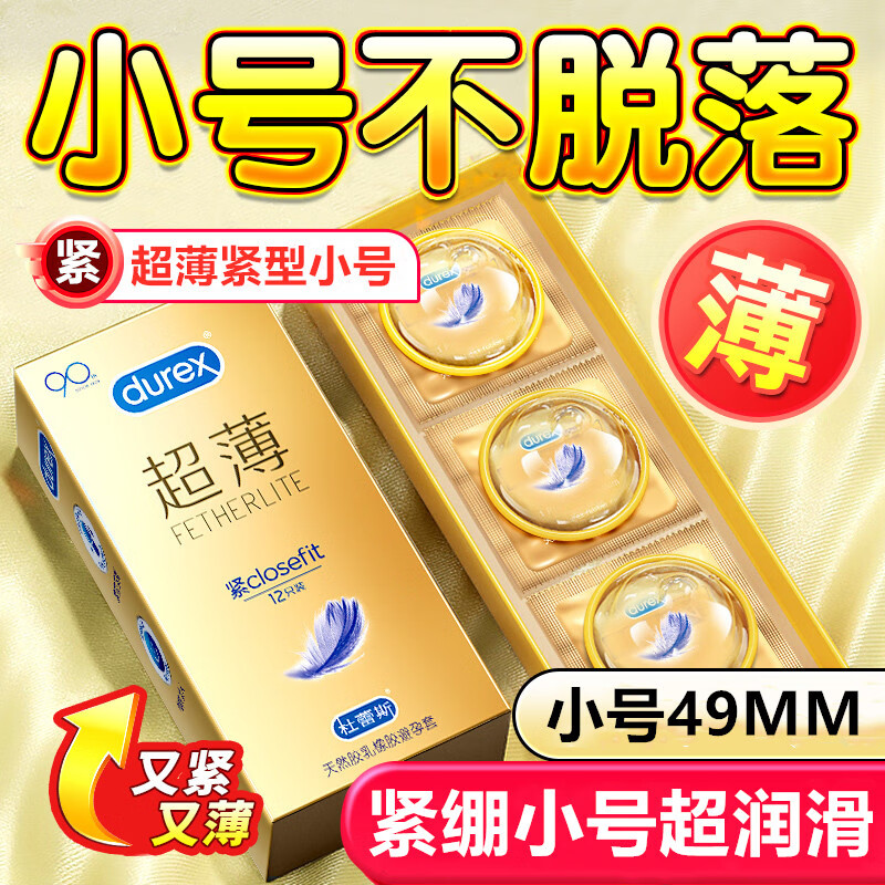 杜蕾斯紧绷型小号001避孕套49mm超薄隐形裸入0.01持久超小特小号安全套 超薄小号防脱落敏感套男女专用超润滑情趣12只