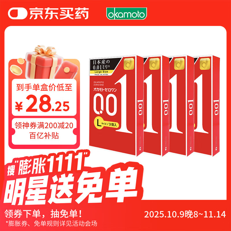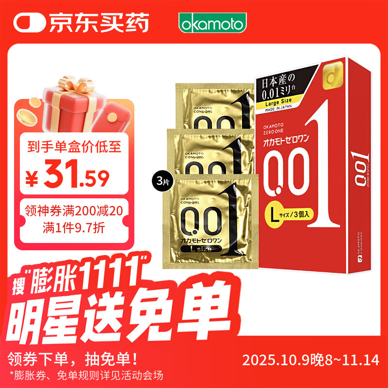冈本001避孕套安全套超薄大号L码3只男女用套套成人情趣计生用品进口