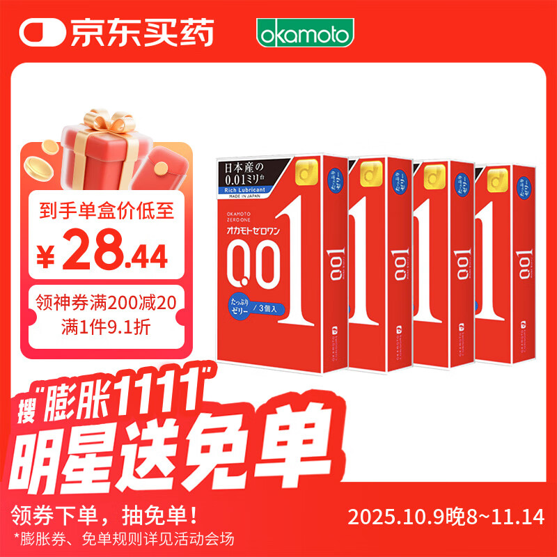 冈本 001 避孕套 安全套 超薄标准3只*4盒 套套 成人情趣计生用品进口
