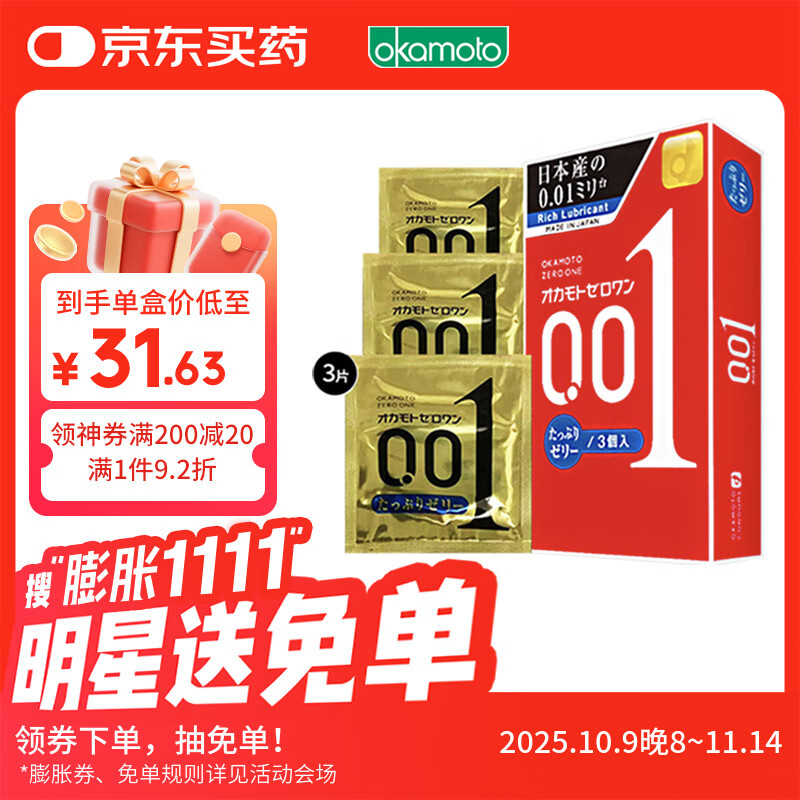 冈本001避孕套安全套超薄标准双倍润滑3只装套套成人情趣计生用品进口