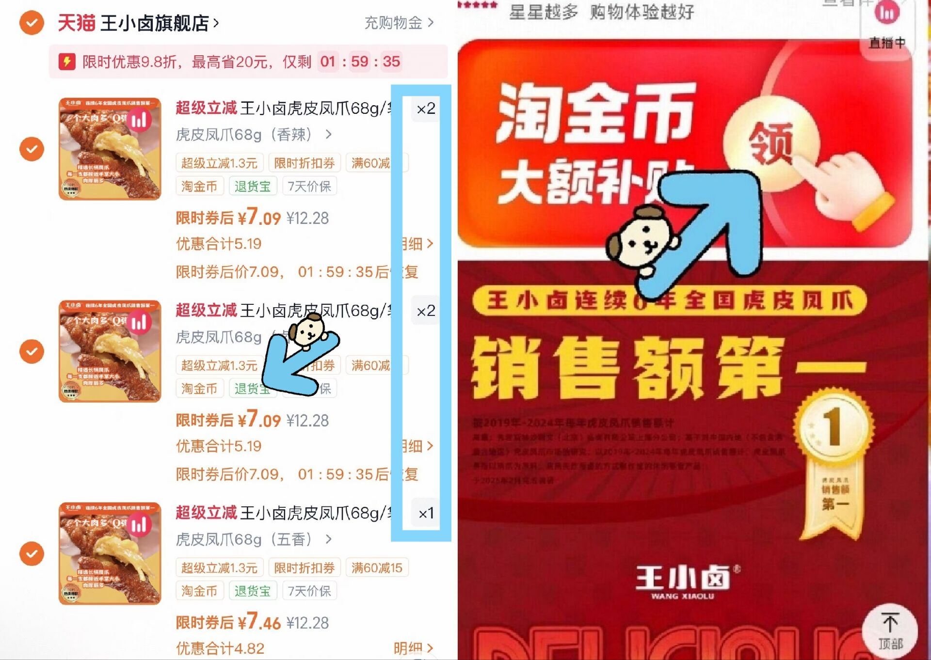 下拉叠加淘金币 限时98折