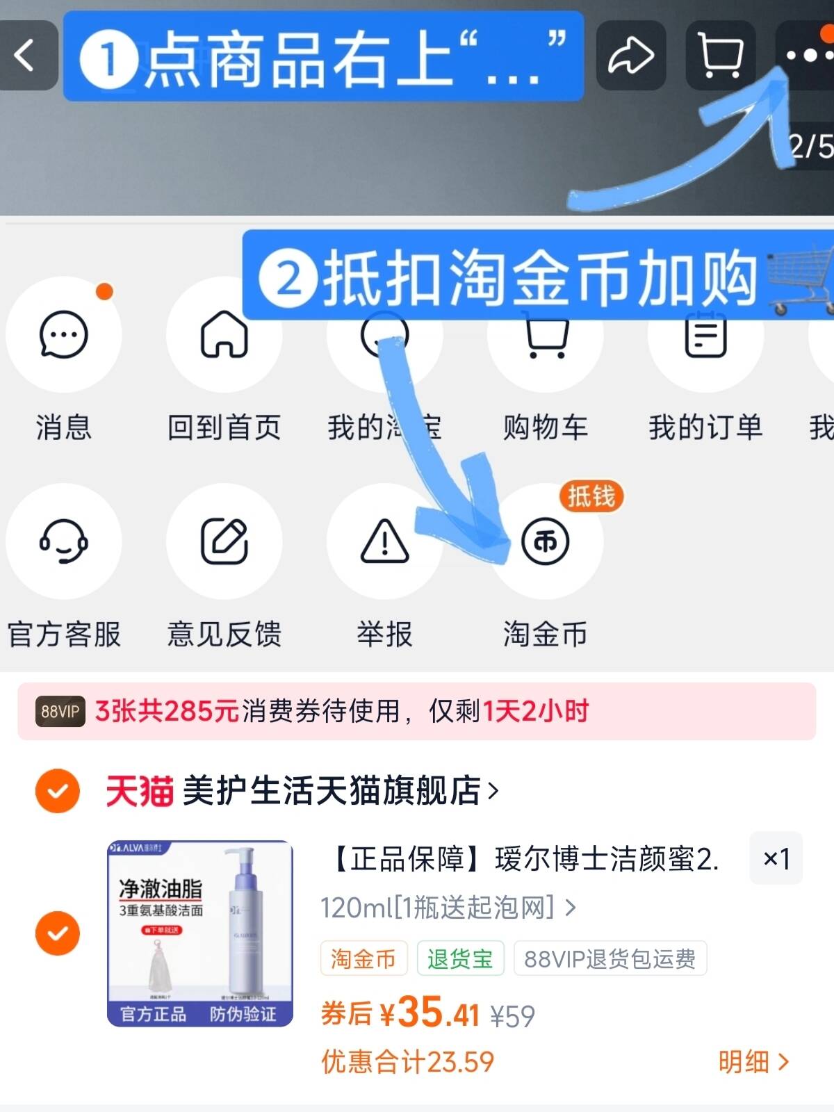 限量弹1.53元礼金+部分账号有3元品牌立减+淘金币可抵扣2.78元✅,需下拉详情进淘金币抵扣页下单才是这个价!非88会员贵1.1元